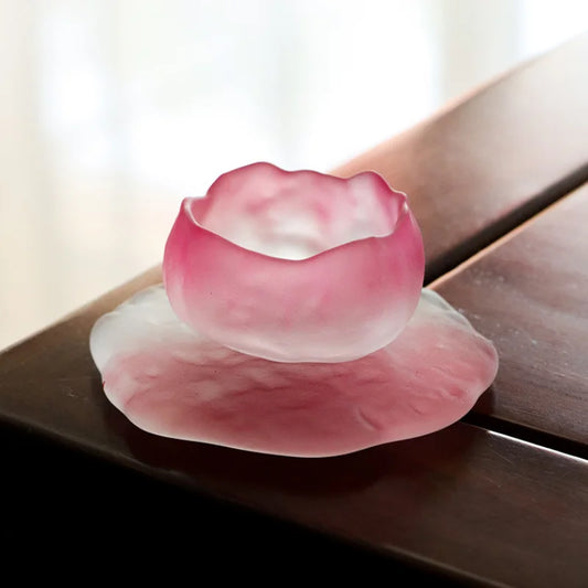 Frosted Cherry Blossom Pink Japanese Glass Tea Cup Set